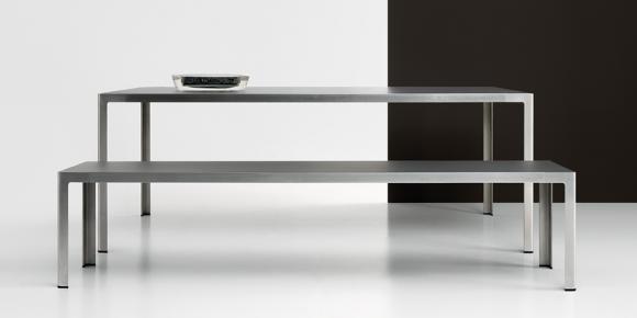 sillon comedor, tumbona, mesas y bancos de acero inoxidable